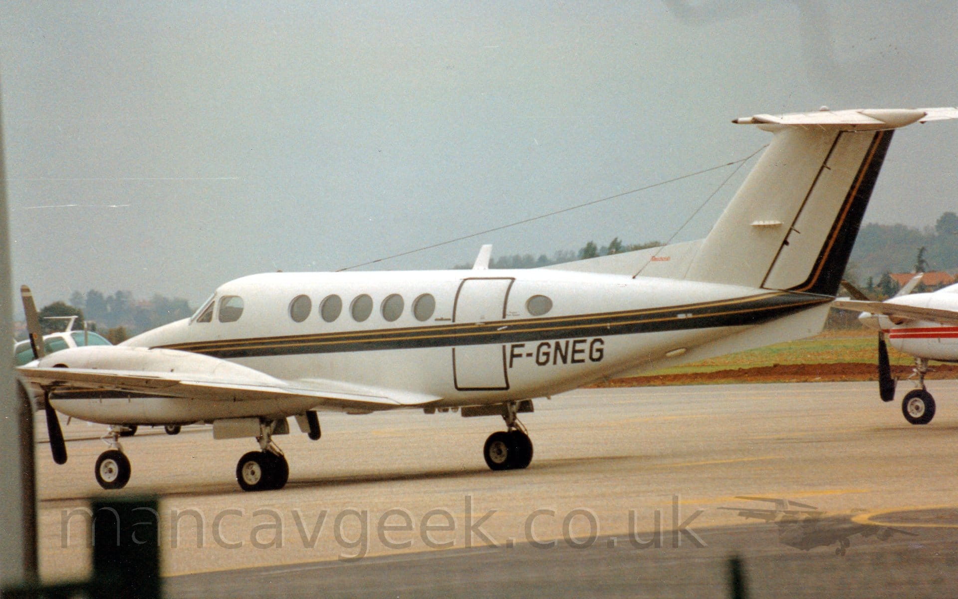 F-GNEG, Beech King Air 200, Air Ailes, at Lyon Bron, 7th October 1996.